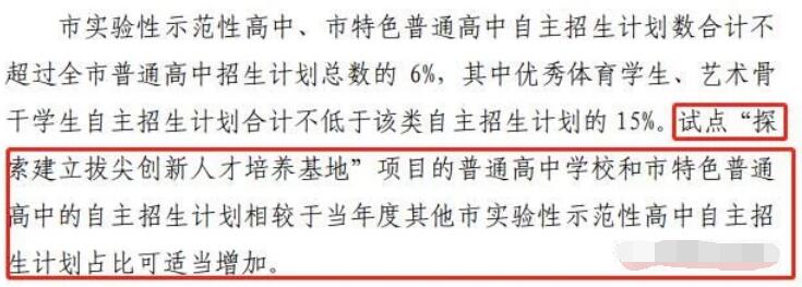 自招:全市普通高中招生计划的6%