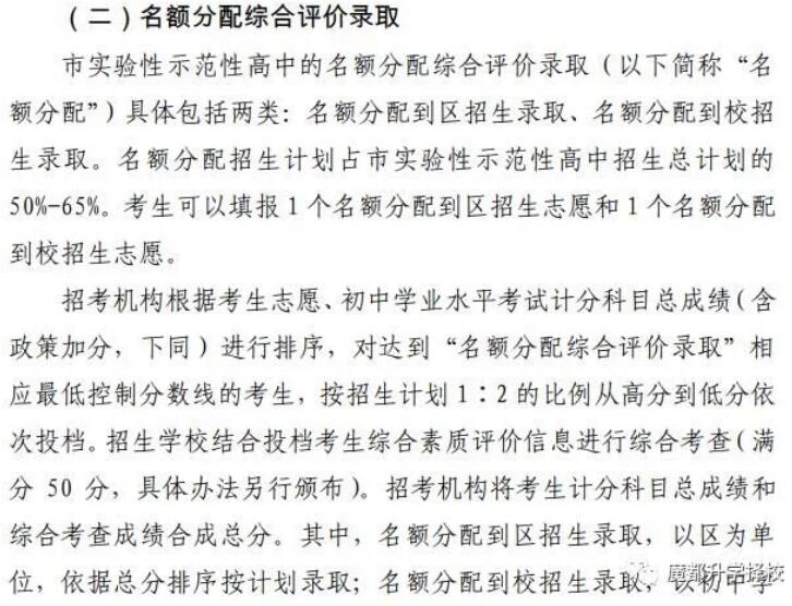在此次出台的文件中,“市实验性示范性高中名额分配综合评价录取”无疑是最值得关注的部分。