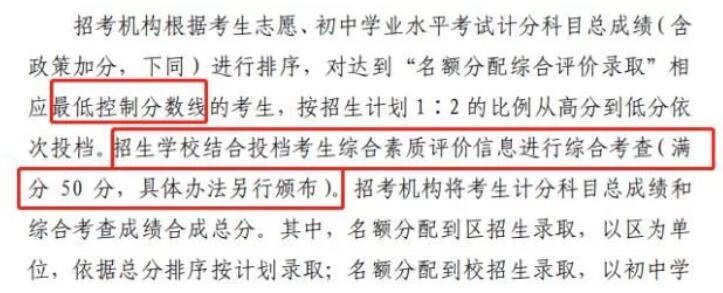2) 达到名额分配控分线后还需参加50分综合考查