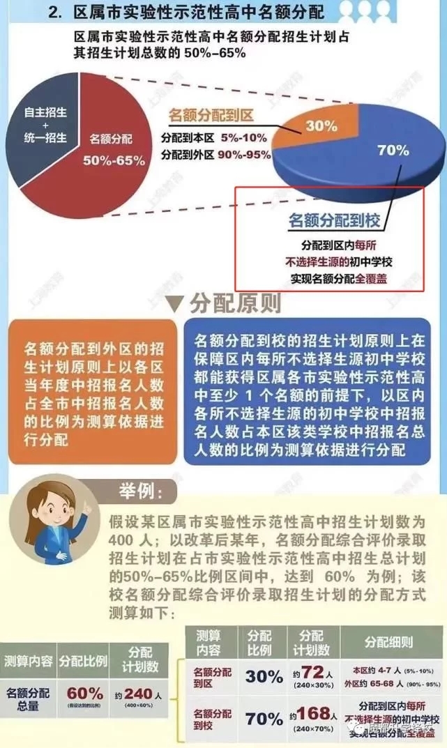 名额分配:市实验性示范性高中招生计划50%以上名额分配