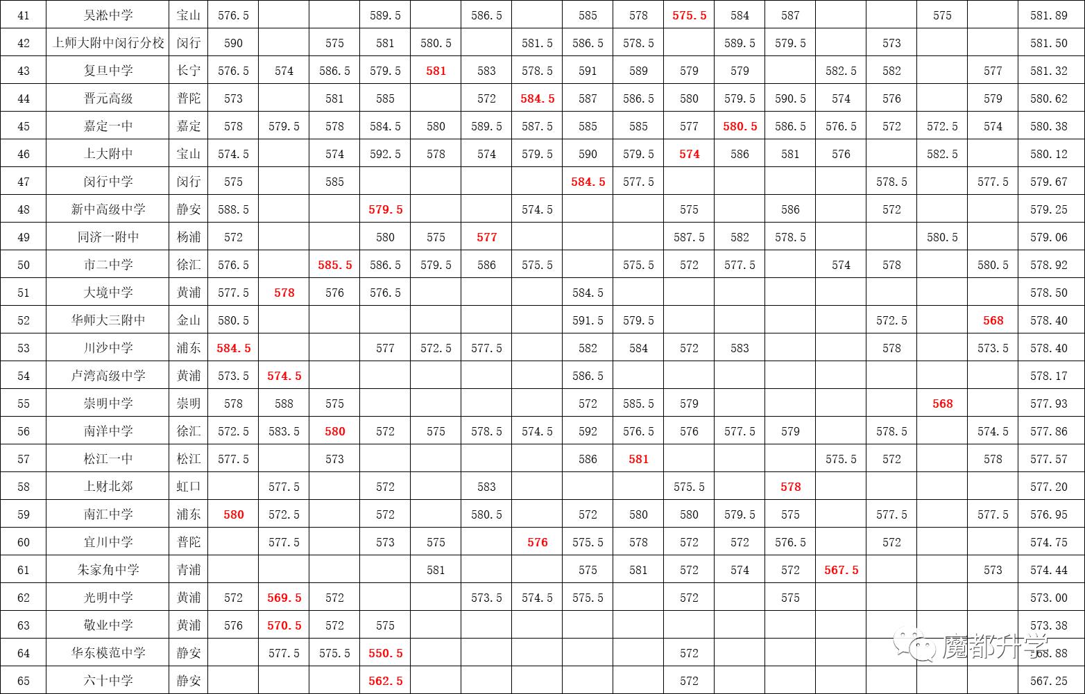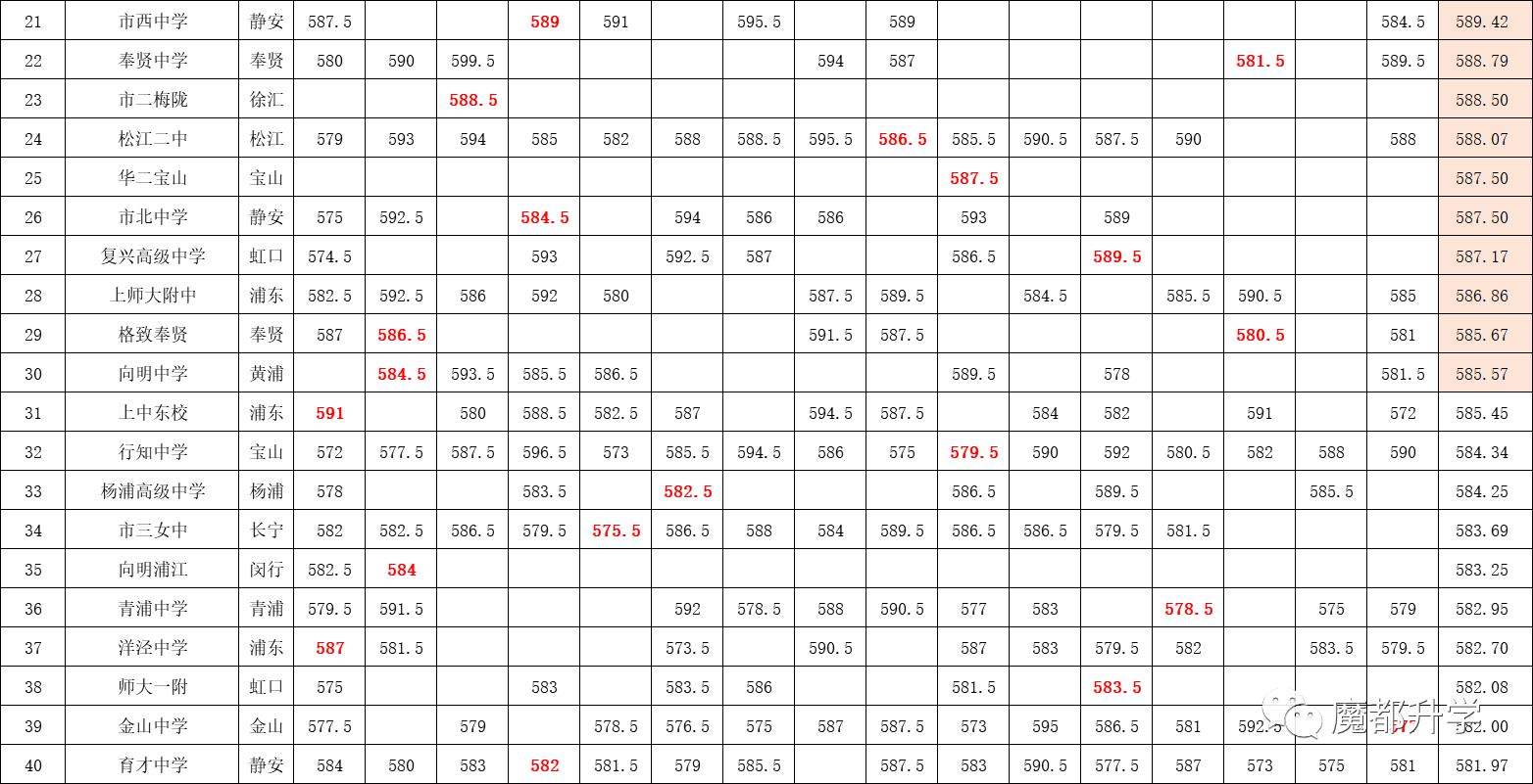 通过计算各高中在16区的平均录取分数线,由高到低排序,排出上海高中TOP40!