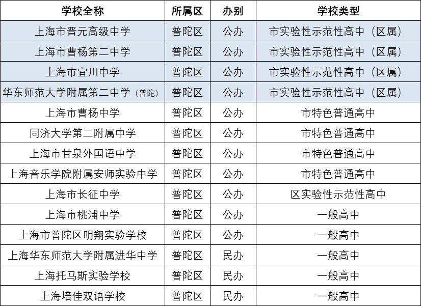 曹杨二中、宜川中学、晋元中学、华二普陀