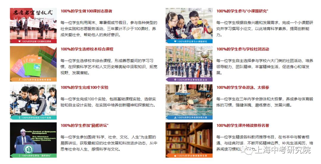 招各科均衡发展学生,教学采用“1.5+0.5+1”模式,即1.5年上海教材,0.5年全国教材,1年高中大学衔接课程。
