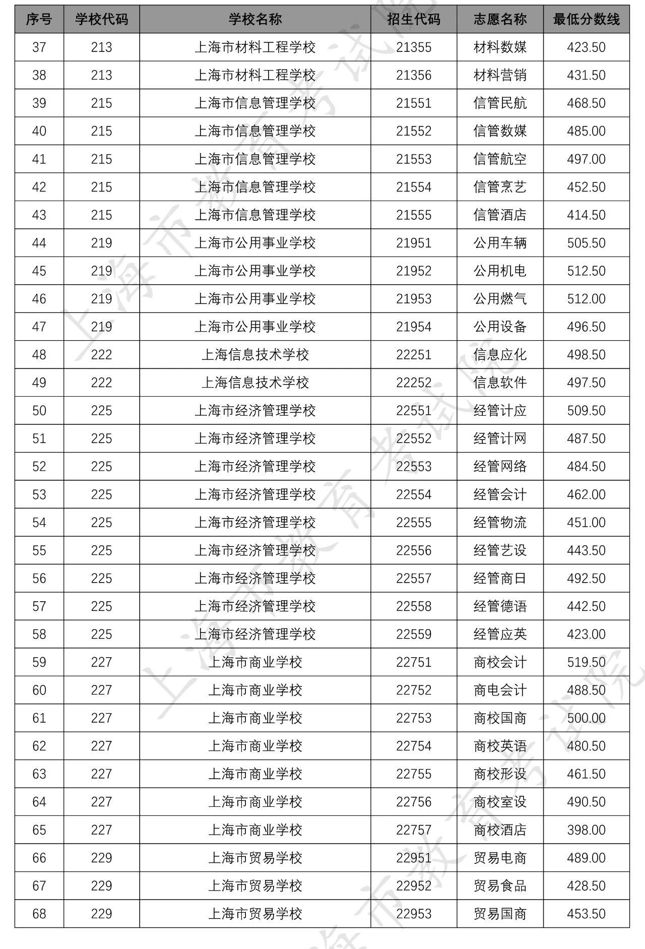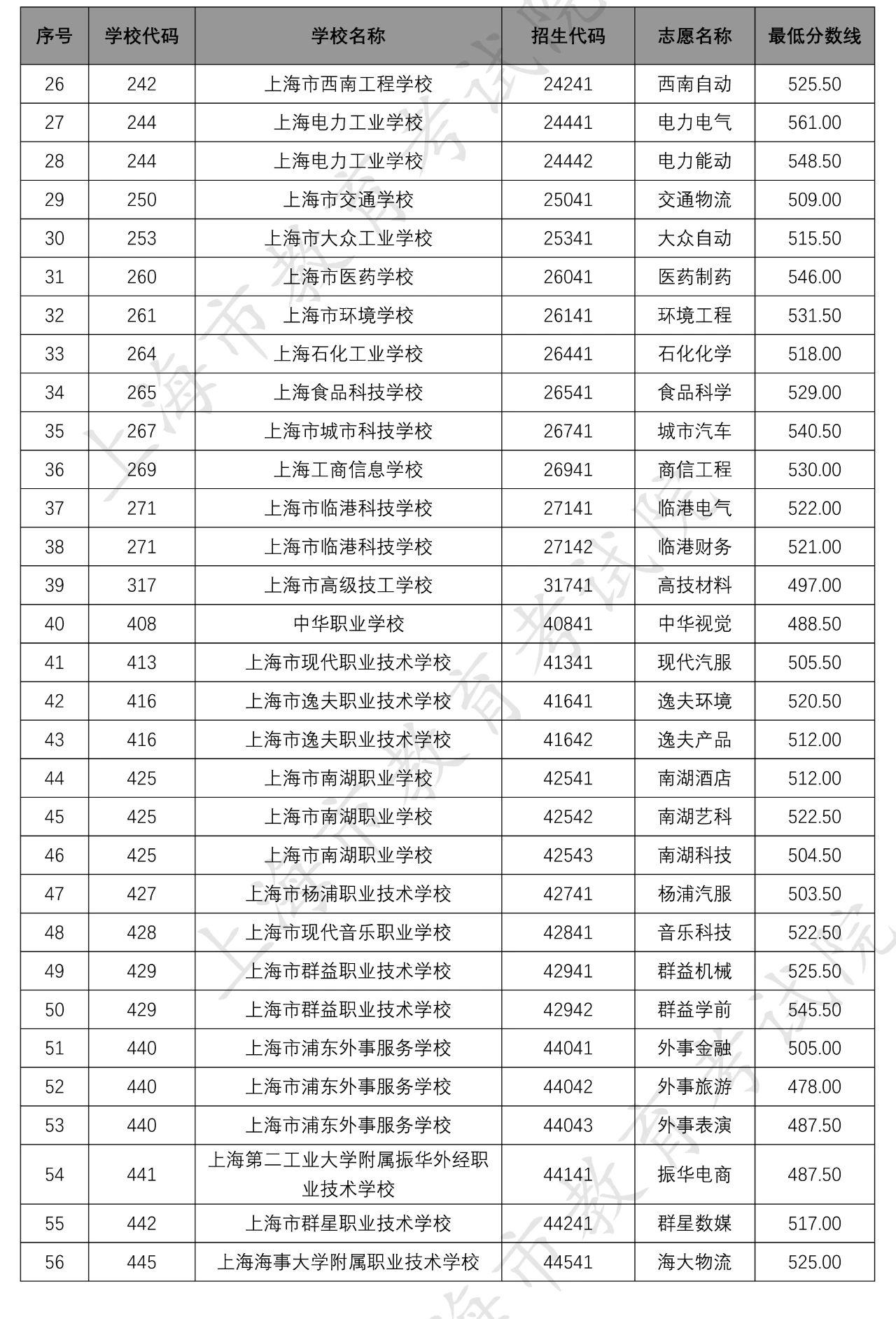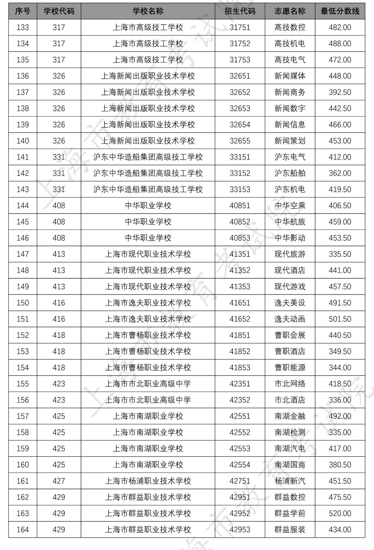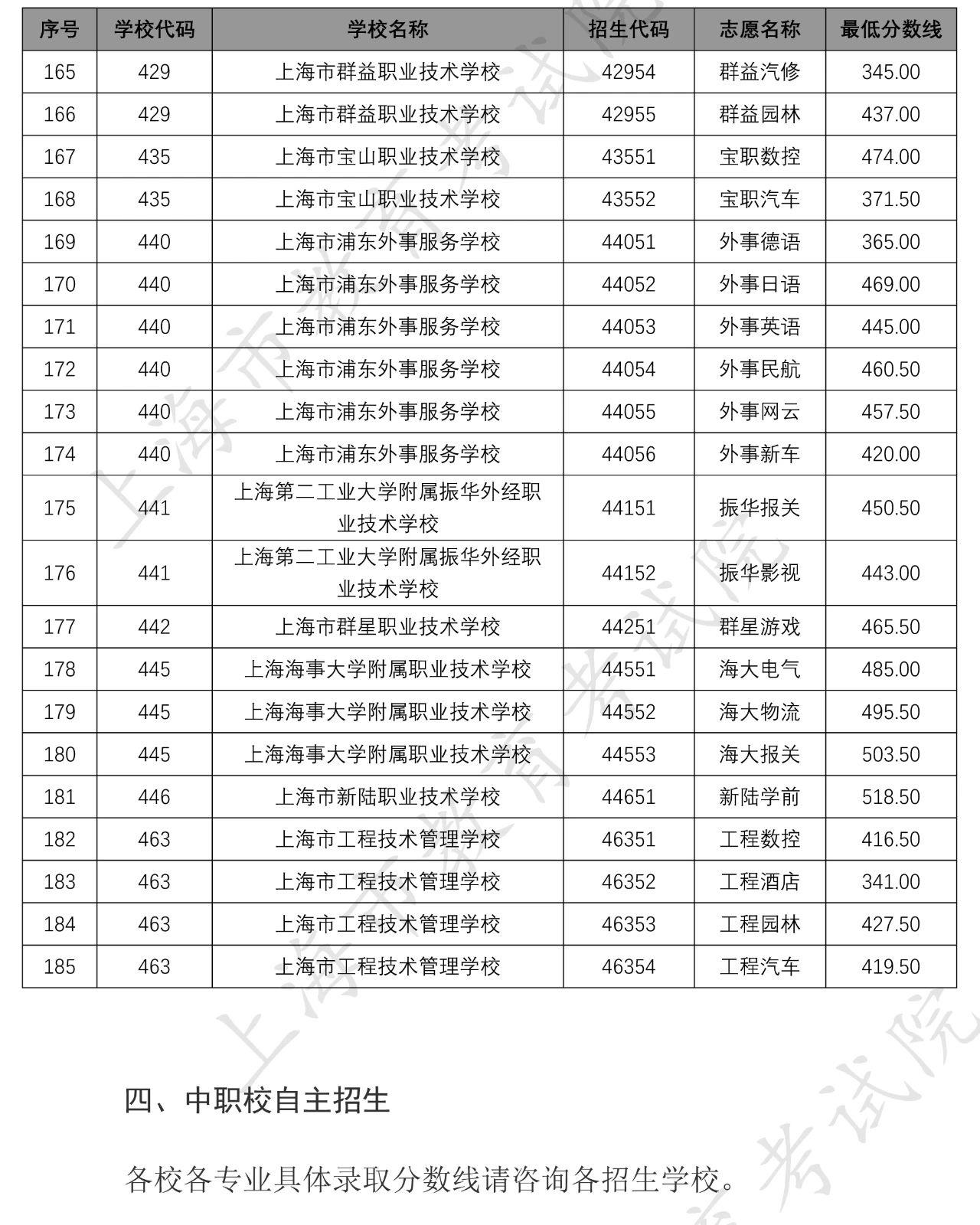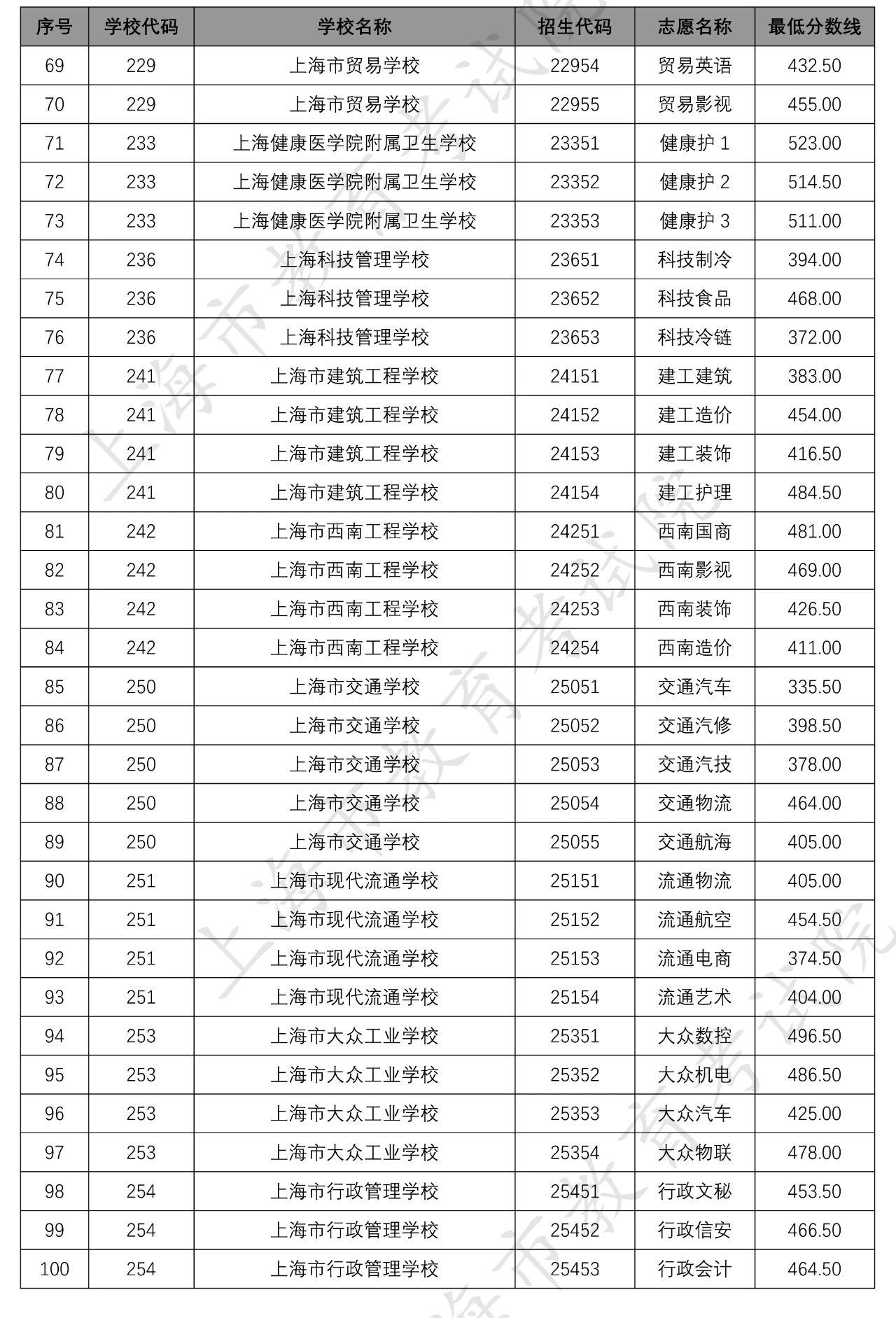 去年中本贯通、中高职贯通、随迁子女录取分数线 2021/4/9 11:05:20 上海中考网 人气: 标签:中考 2020年上海市中等职业学校提前批招生中本贯通、中高职贯通各专业录取最低分数线。2021届的家长可作为参考~