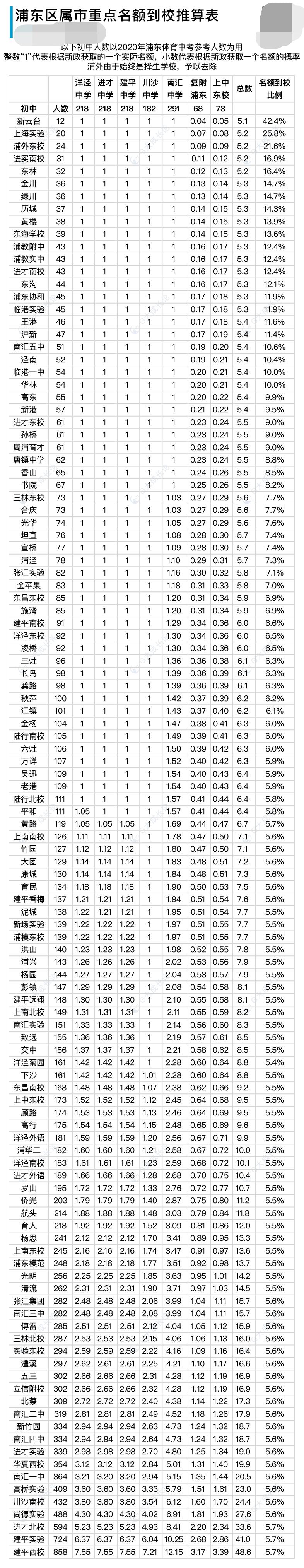 二档以上市重名额分配到初中比例最高的依次是黄浦、长宁、闵行、虹口、普陀