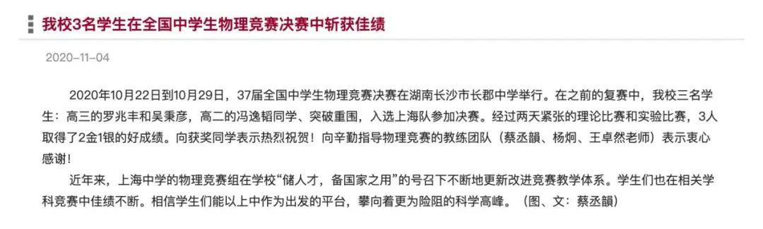 而在刚刚落幕的全国数理化竞赛上海赛区的比赛中,上中学子共斩获71个一等奖(数学48人,物理11人,化学12人),竞赛成绩居全市榜首,又毫不意外的惊艳了众人。