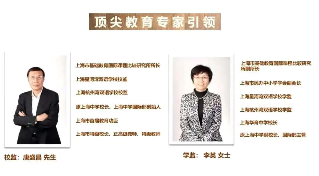 学校师资力量较强,由原上海中学校长唐盛昌先生亲自坐阵,上海华育中学校长李英女士担任学监,同时老师也都是由星河湾调过来的,学校对于教师的要求还是很高的,中方教师有80%具有硕士及以上学历。