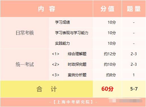 从内容上看,有三大考点,其中道德与心理健康分值占比40%,法律分值占30%,国情分值占30%。
