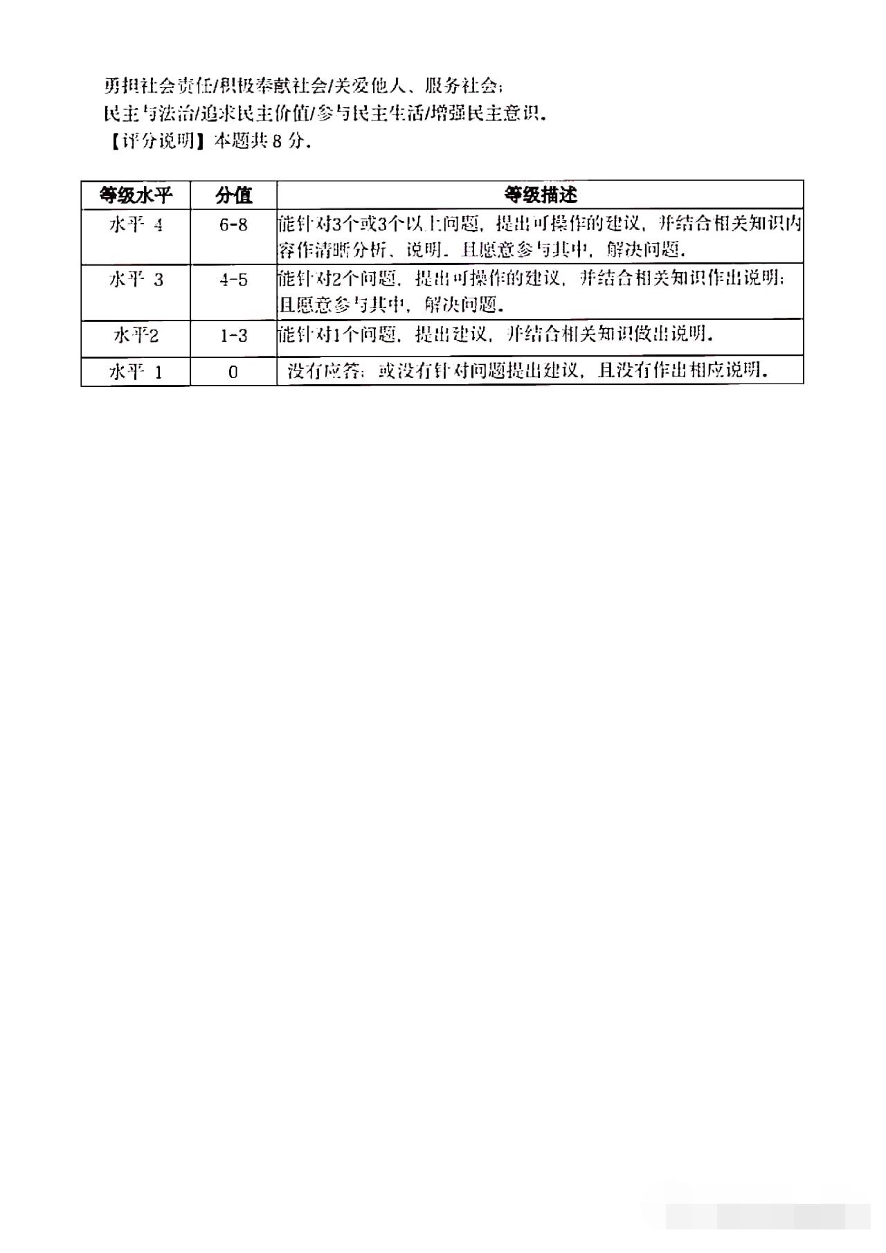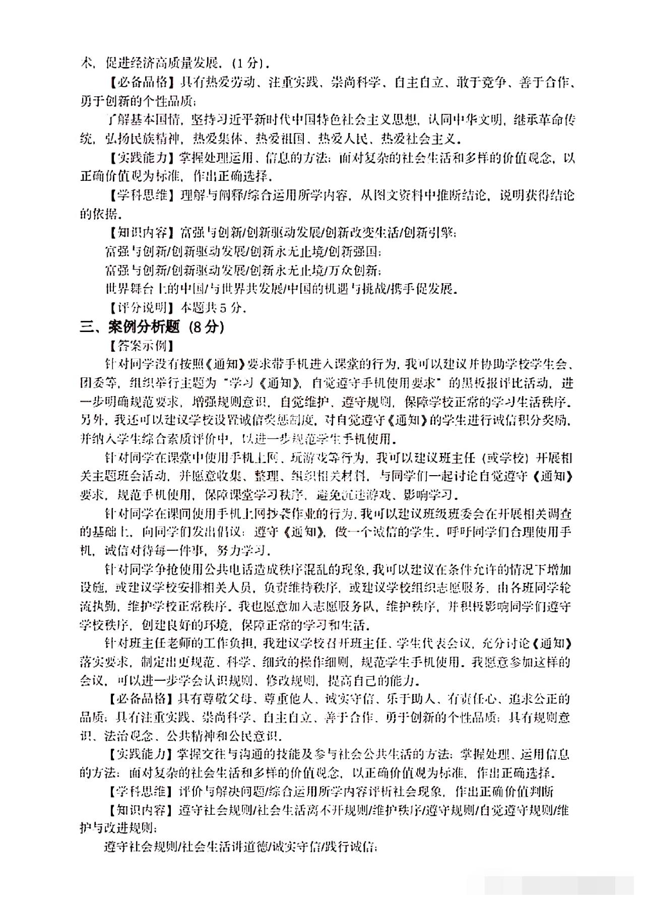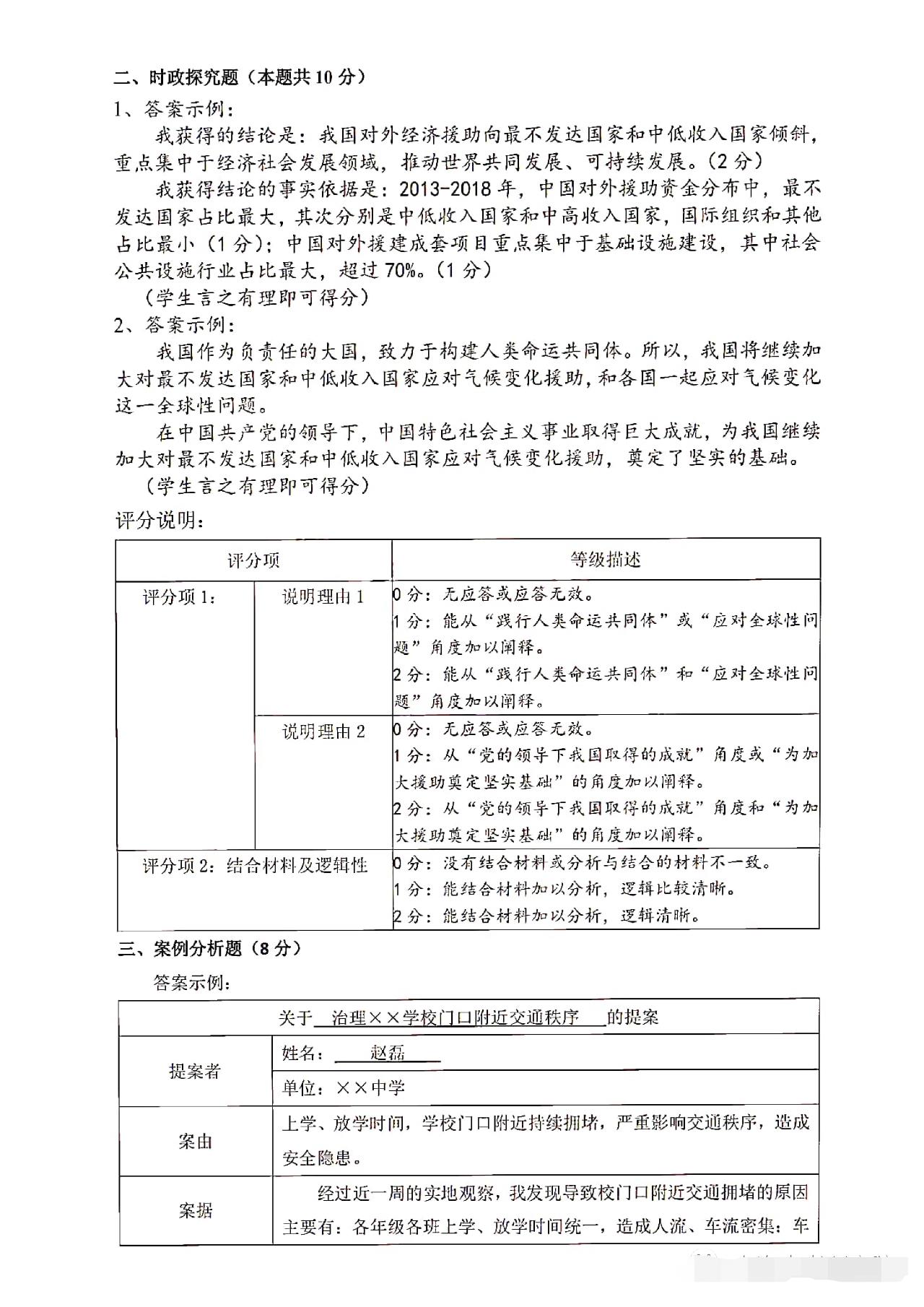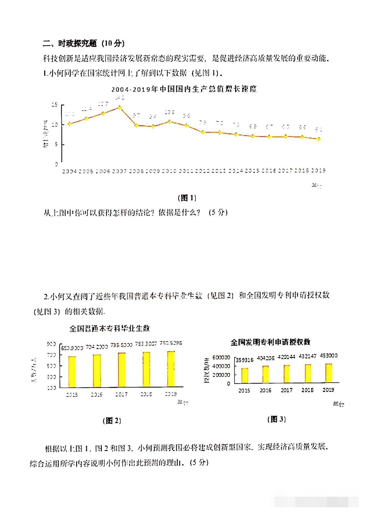 从卷面上看,全卷共有三道综合题,分别为综合理解题、时政探究题和案例分析题,满分30分。