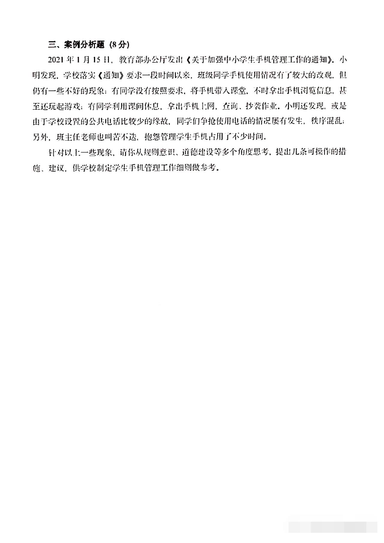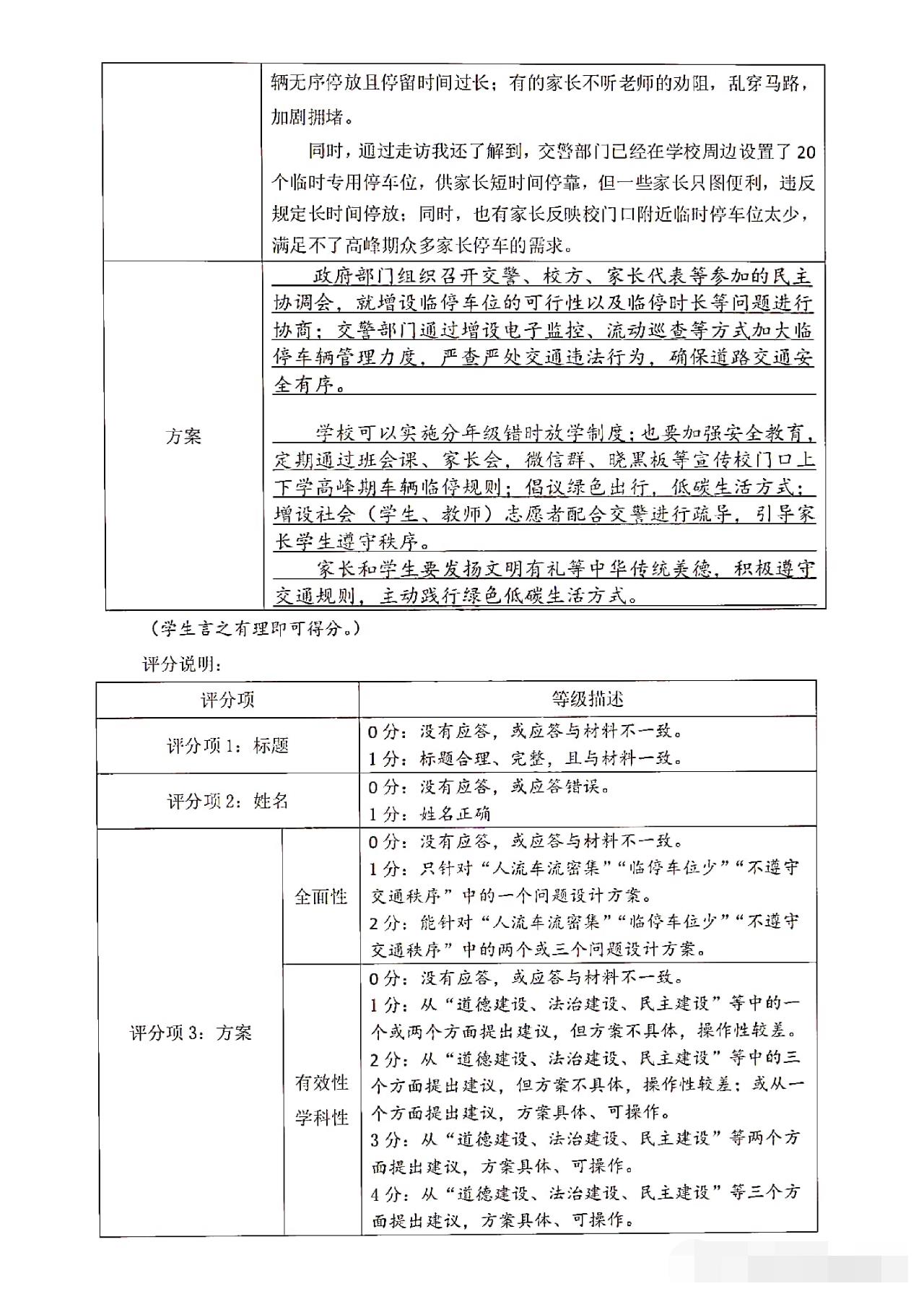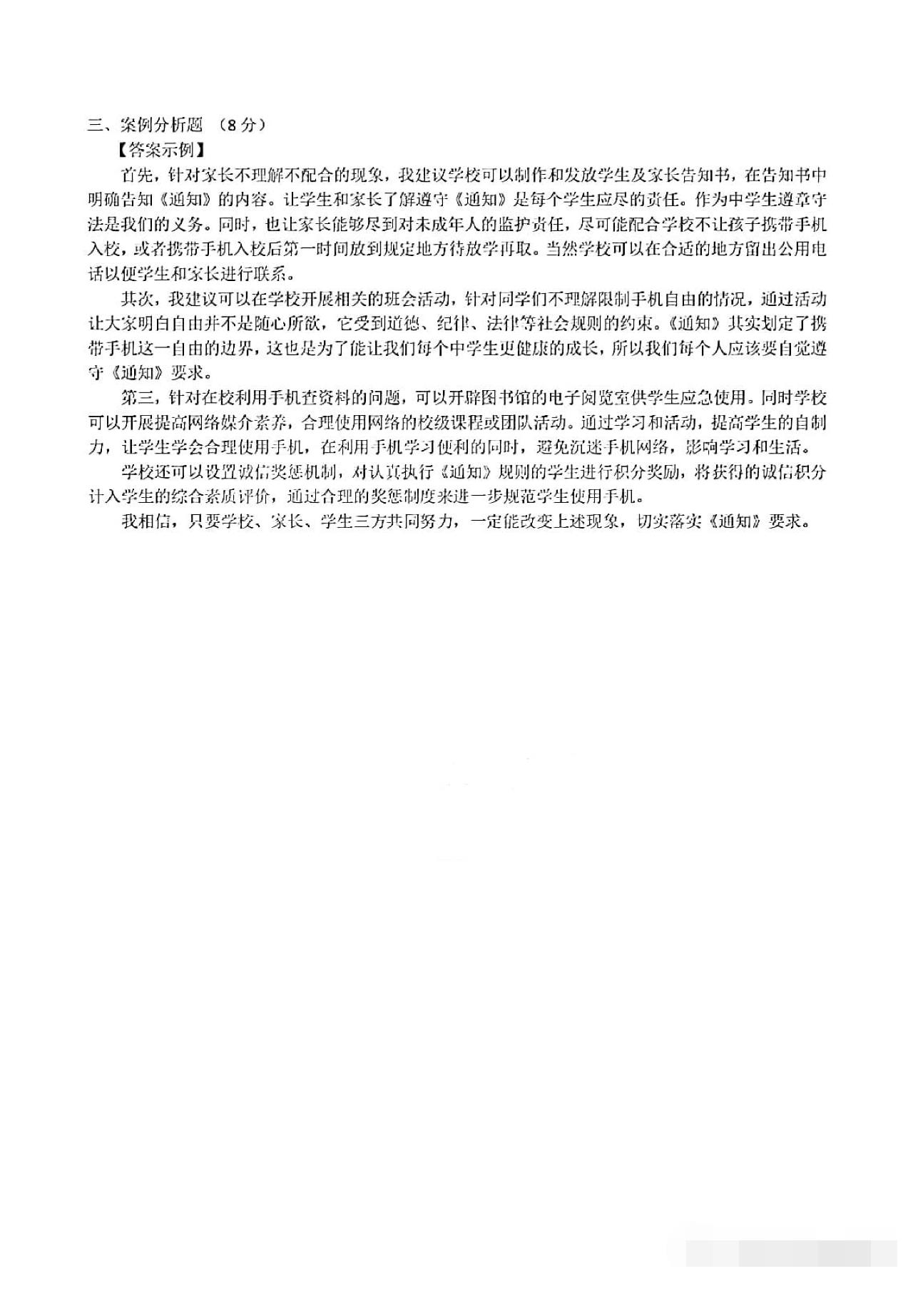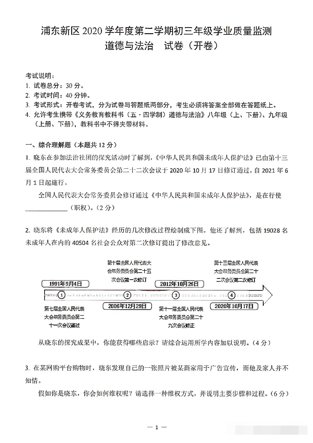 从卷面上看,全卷共有三道综合题,分别为综合理解题、时政探究题和案例分析题,满分30分。