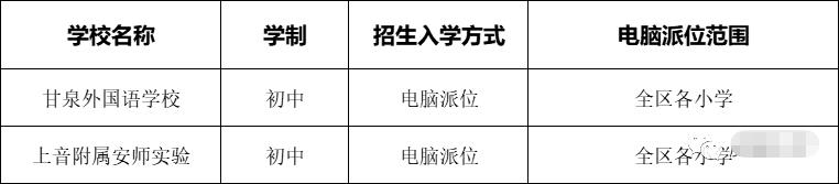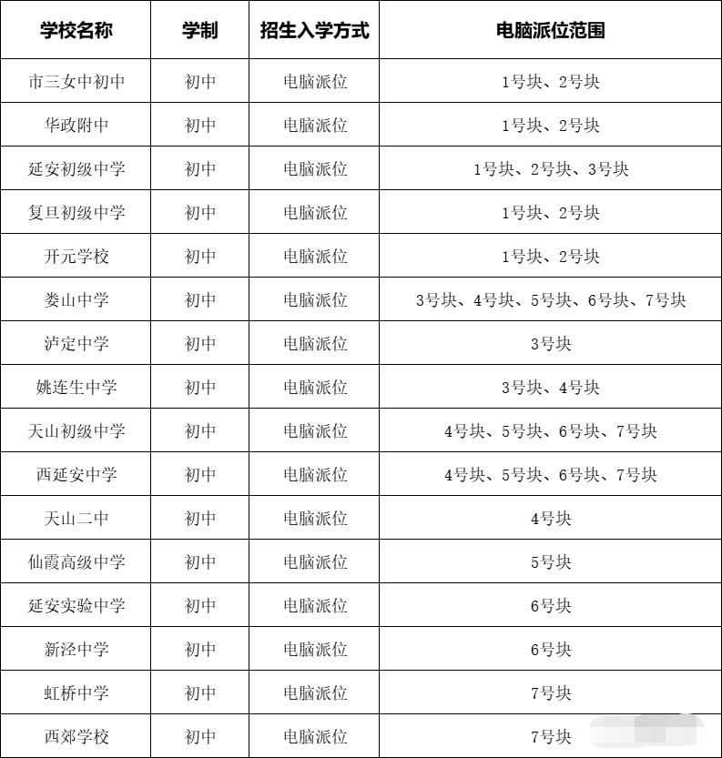 静安跟徐汇的情况相似,也是电脑派位+对口相结合的方式。其中,需要电脑派位的有5所初中。