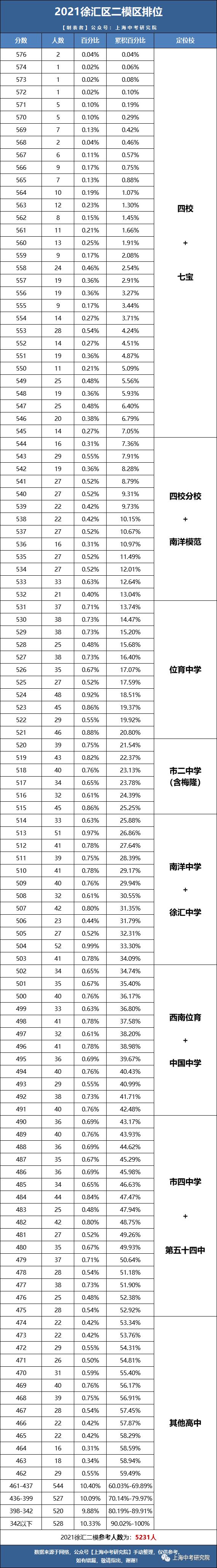 徐汇二模人数5231人。区内最高分有2位同学并列576分。据传,华育均分达548分!