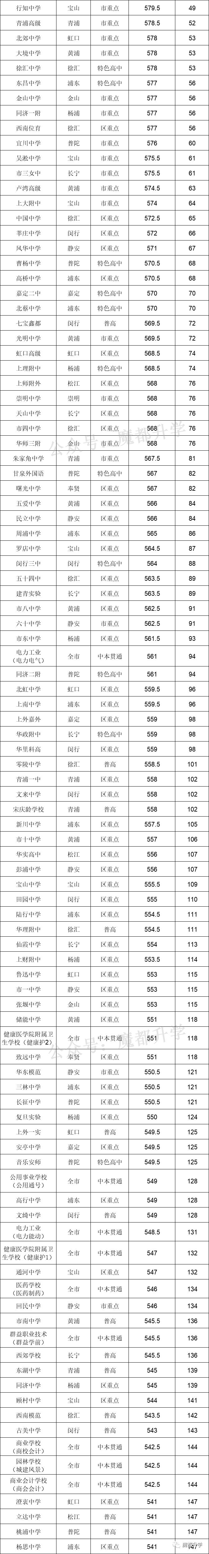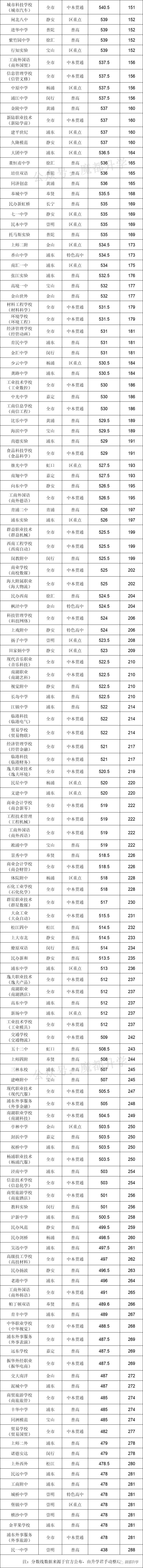 整理了2020年上海全市288所学校(含中本贯通)的录取分数线,制成排位表,方便大家参考查看!
