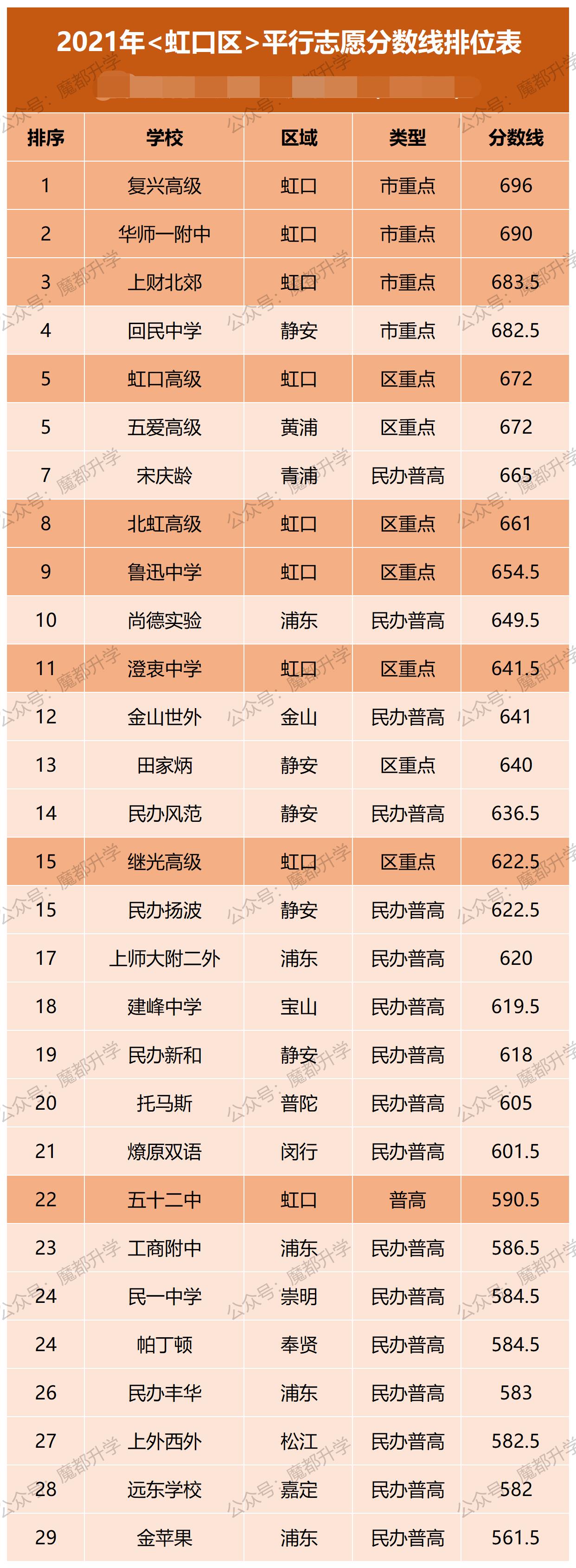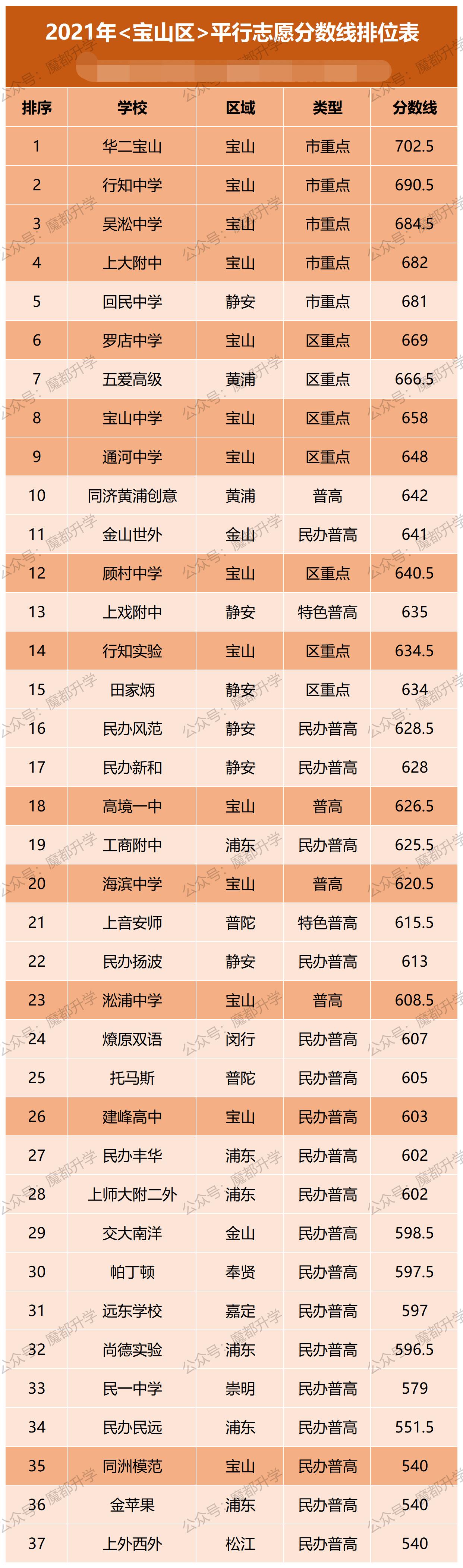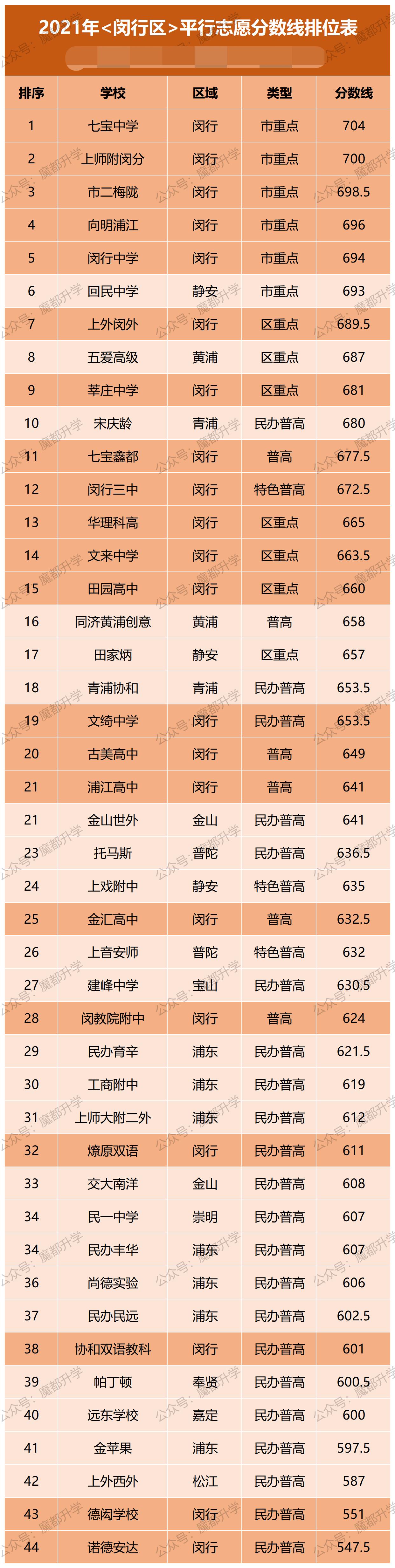 2021上海各区高中分数线排序表! 2021/8/26 13:01:47 上海中考网 人气: 标签:中考 今天就给大家安排上,2021年上海各区高中录取分数线排位表,方便大家了解各高中学校在本区的招生分数线。如果你是新初二、新初三的同学,强烈建议转发收藏本文,方便日后随时查看! 说明:下表中本区高中用了较深底色,外区高中用了较浅底色,便于大家识别。此外,下表分数线数据来源于各区官方发布。 黄浦区 徐汇区 长宁区 静安区 普陀区 虹口区 杨浦区 闵行区 宝山区 嘉定区 浦东新区 崇明区 奉贤区 青浦区 松江区 金山区