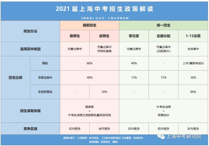 上海新中考招生录取政策